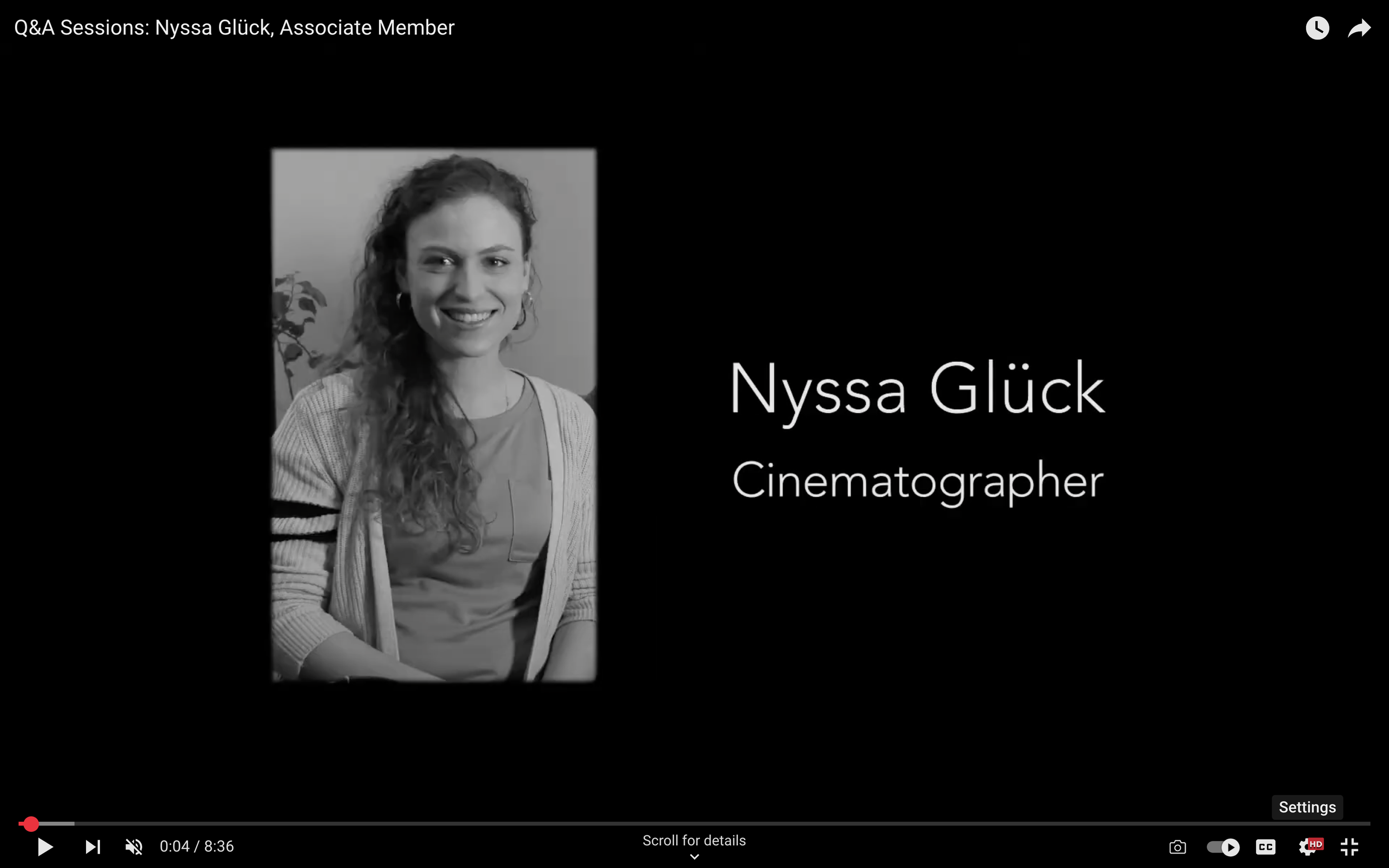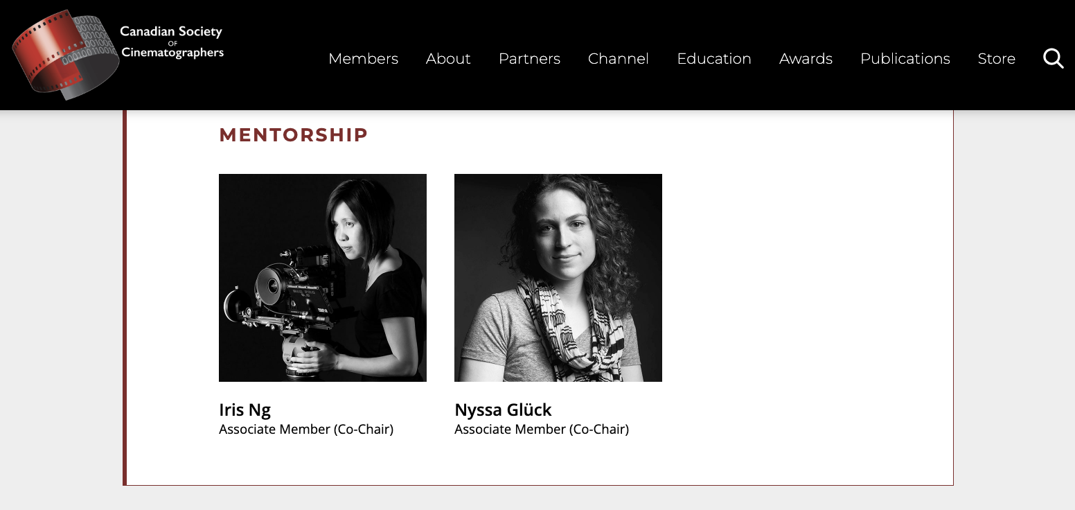 Nyssa Glück has been a co-chair for the Canadian Society of Cinematographers since 2020.